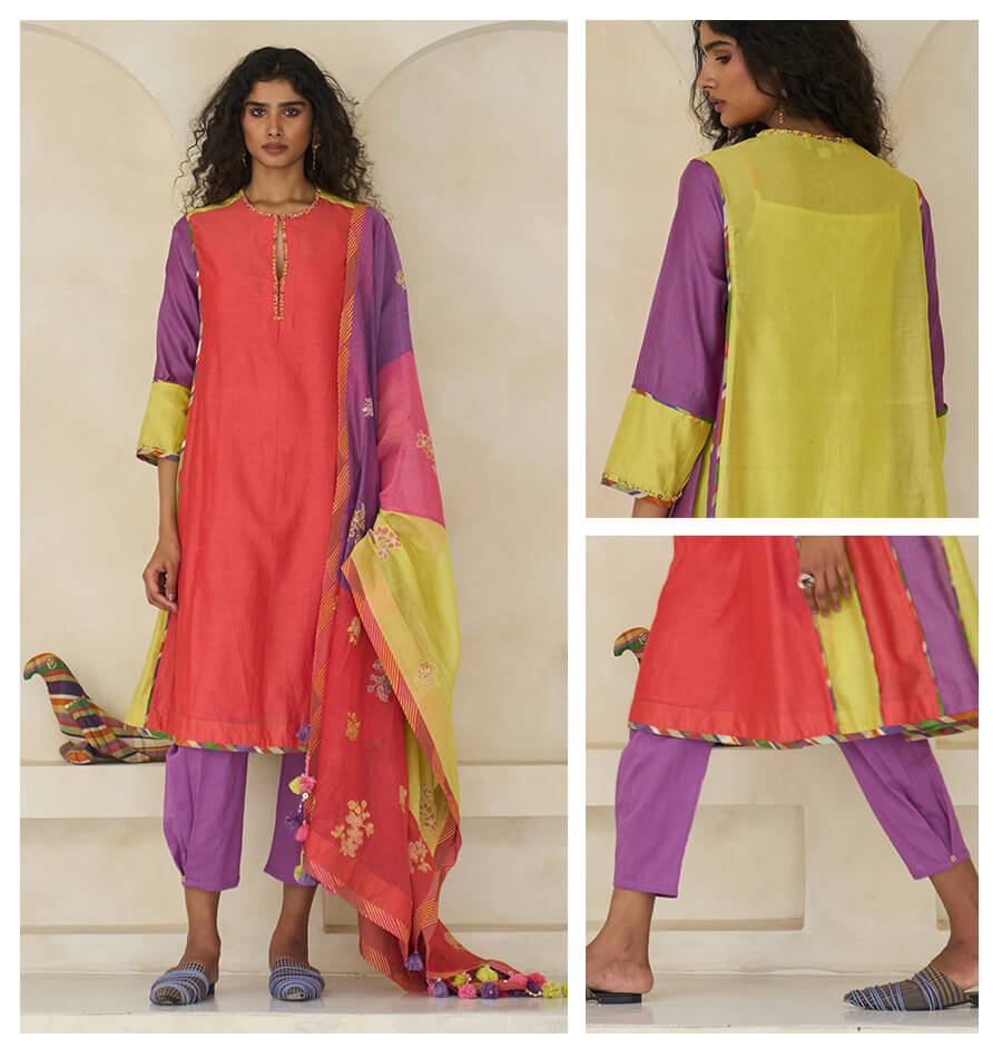 - Woven striped silk organza and handwoven 60 gm Chanderi with 100% cotton lining.