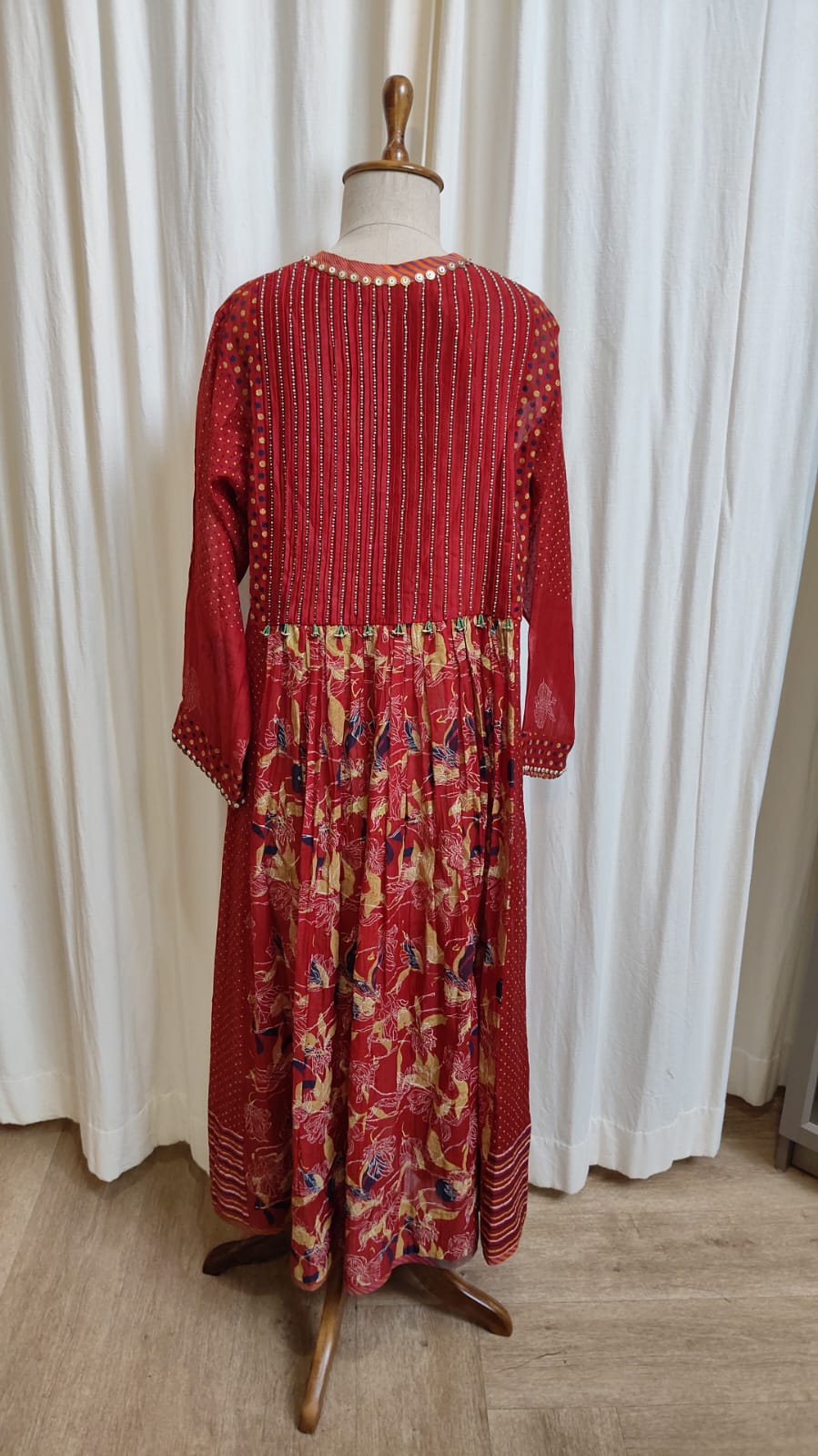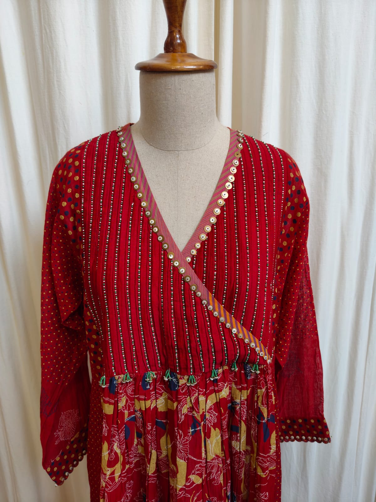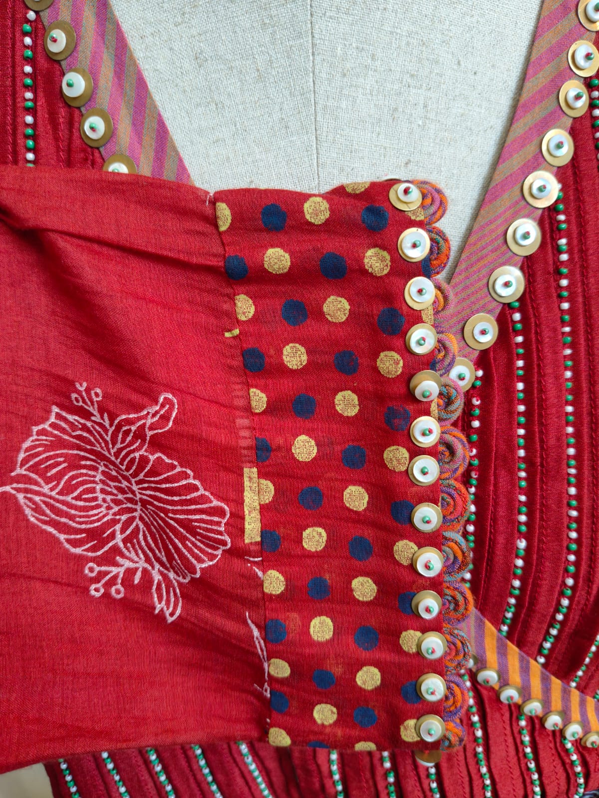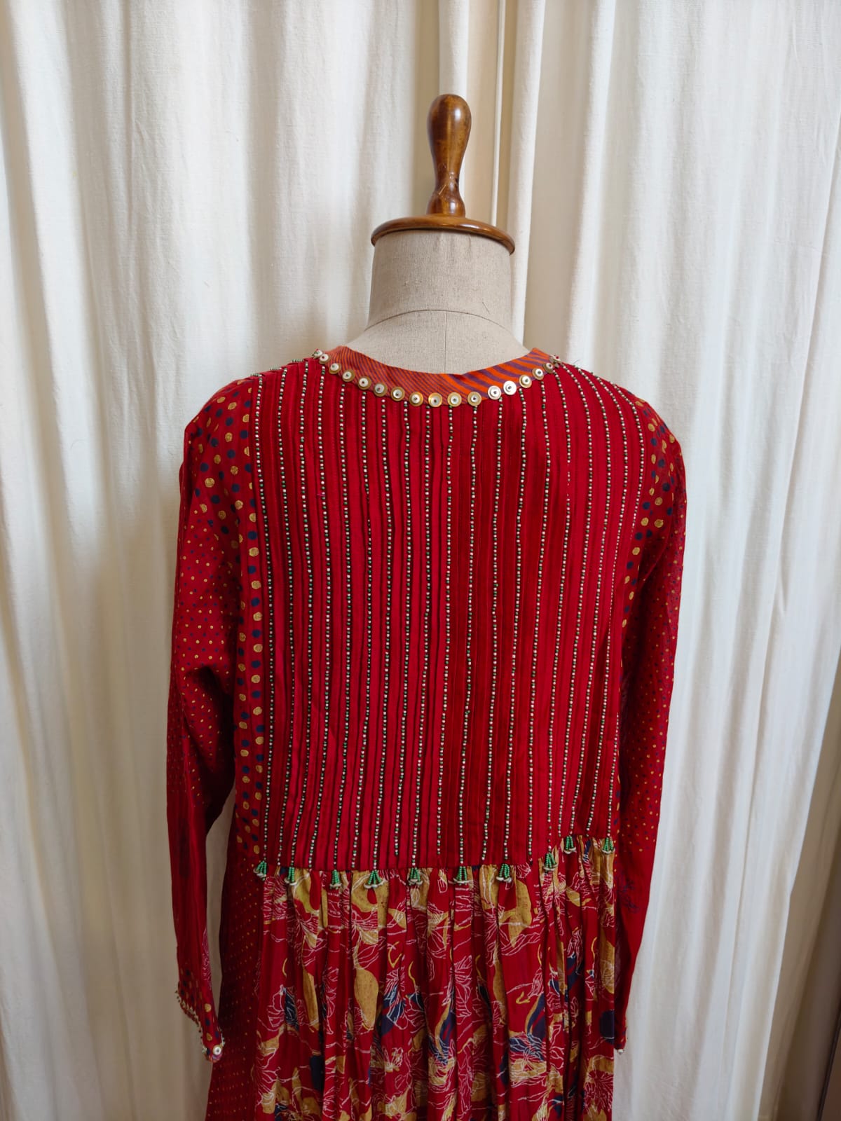 Handwoven Chanderi Pintucked Dress/Kurta With A Slip. Embellished With Hand Block Printed And Hand Done Beading