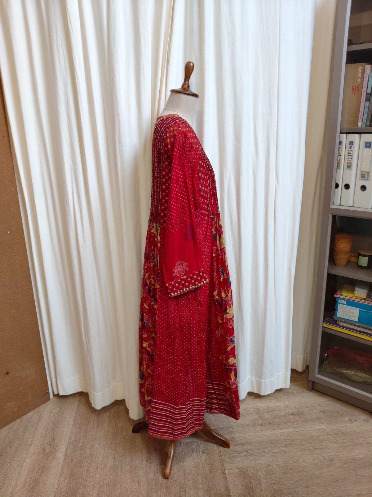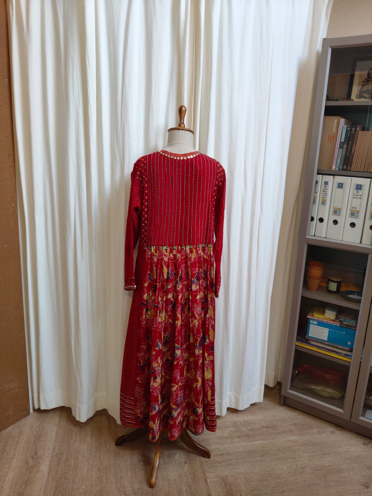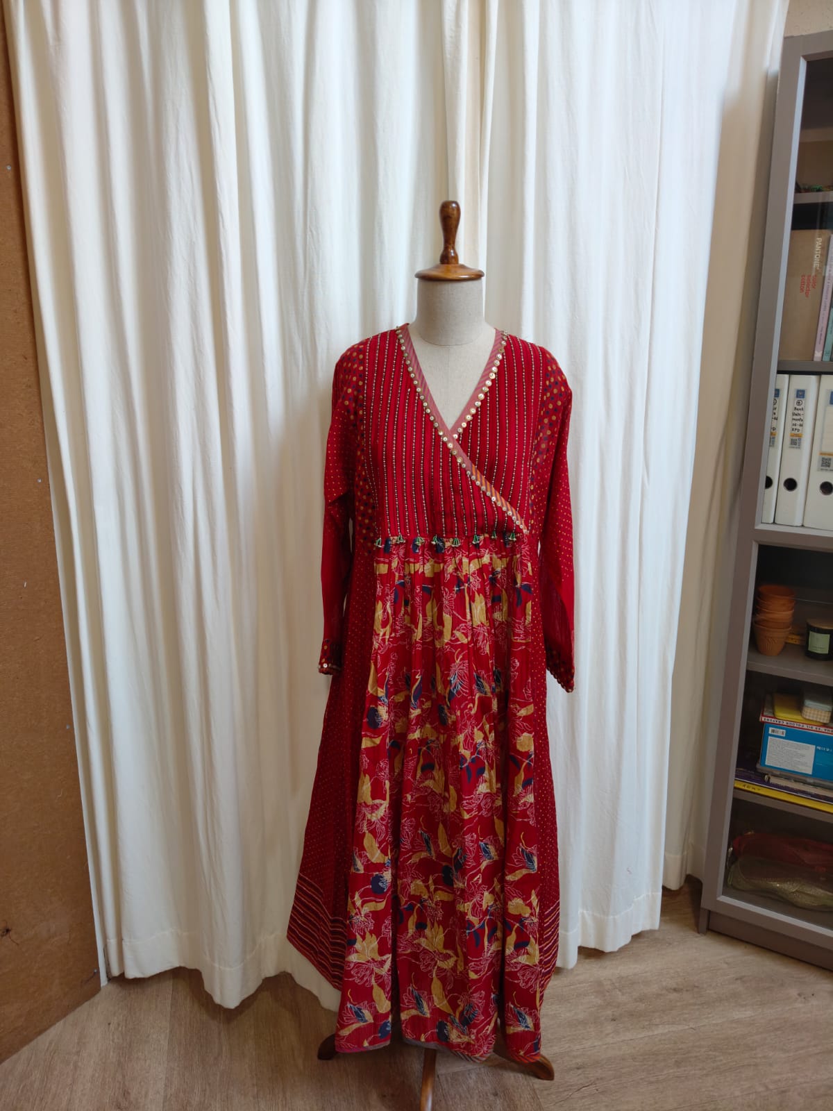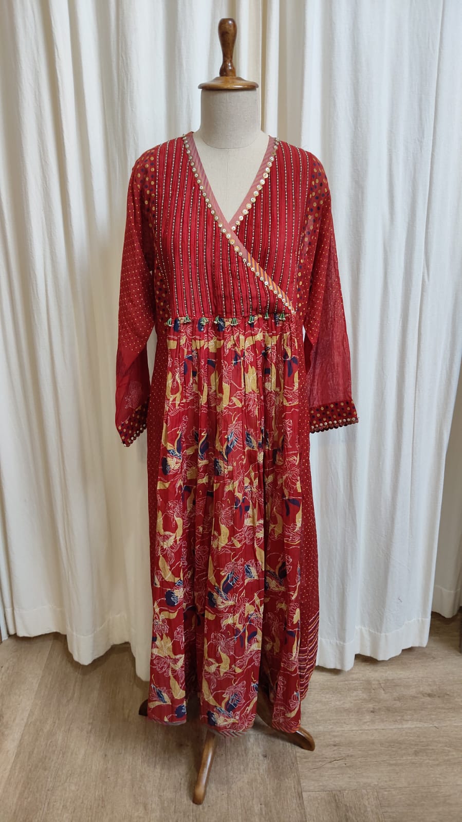 Handwoven Chanderi Pintucked Dress/Kurta With A Slip. Embellished With Hand Block Printed And Hand Done Beading