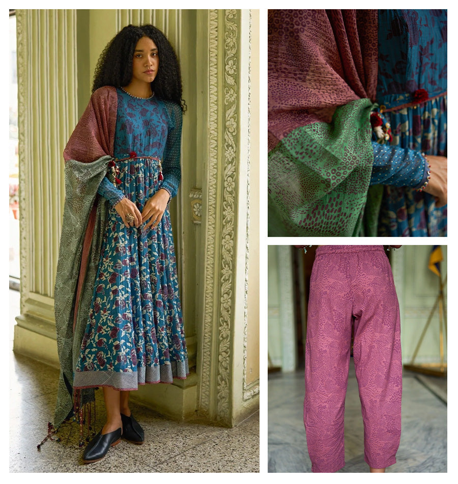 Handwoven with utmost care from luxurious chanderi fabric, this Elliot Dress embodies the artistry of traditional block printing. The spliced design adds a touch of artistic flair, while the hand-done beaded tassels exude elegance and charm.