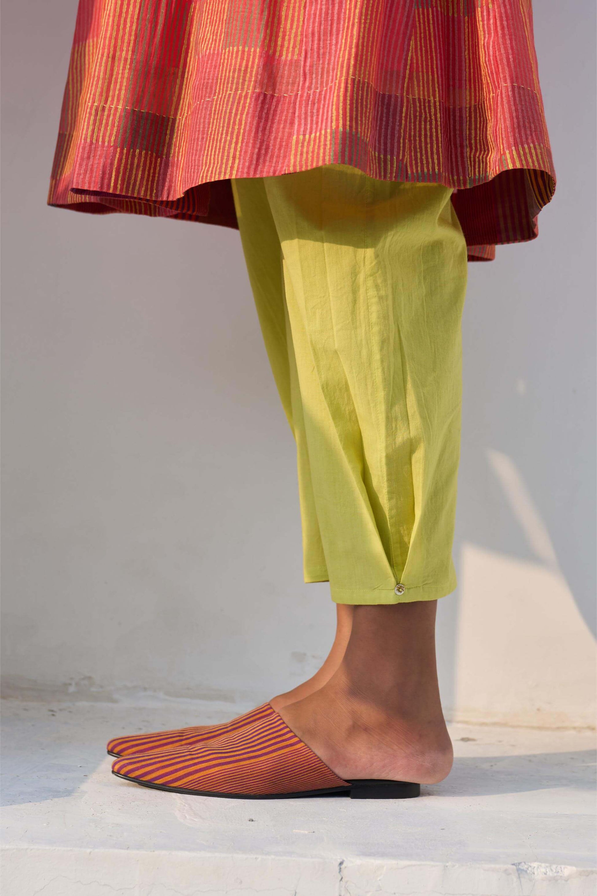 - Woven striped silk organza and handwoven 60 gm Chanderi with 100% cotton lining.